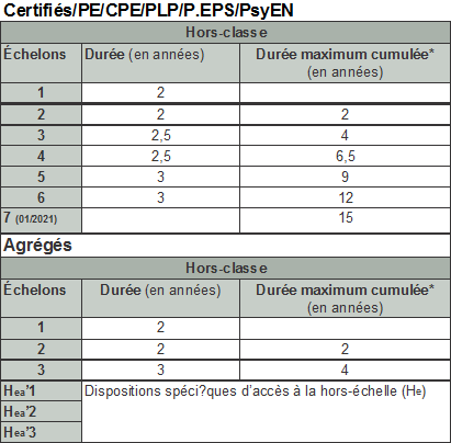 à la Hors Classe. Le tableau suivant indique